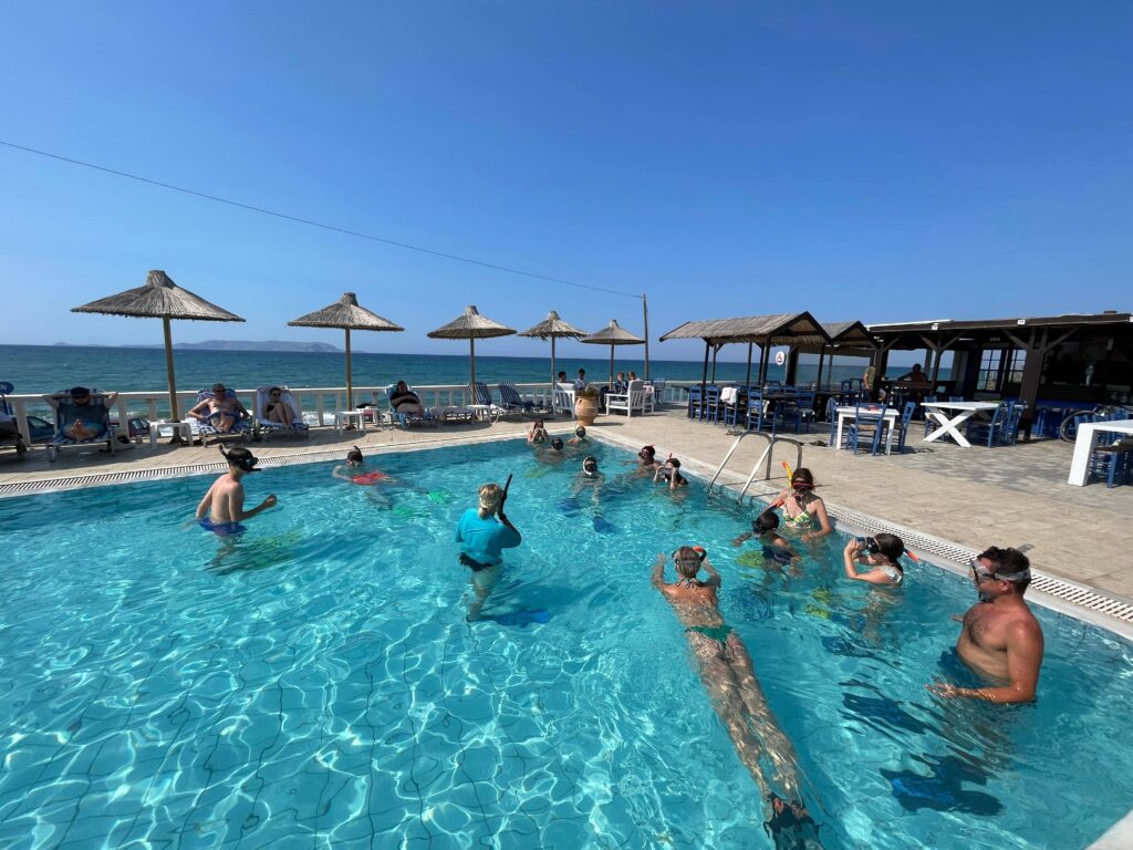 Nach einem Vormittag voller neuer Eindrücke ist es Zeit für die ultimative Entspannung. Am Nachmittag lässt du dich gemütlich auf einer Liege an unserem Pool nieder oder gehst die paar Schritte zum azurblauen Meer direkt vor der Tür. Mit einem kalten Getränk in der Hand und dem Blick auf die ägäische Küste genießt du das echte griechische Inselleben. Der perfekte Mix für eine unvergessliche Zeit!