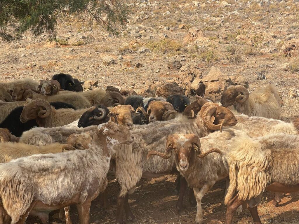 Winding roads through olive groves will lead us to the gorge of Anopoli. When you continue the path you come to the little stream where you often see turtles. The more you walk on, the more you can see from the gorge. In the gorge you see pink granite, marble formations, quartz and sandstone rocks. Regularly you meet along the way the local shepherds. After the hike through the gorge you arrive at a geologic paradise: sandstone formations with many kinds of fossils. Walking along this wall you can make the most beautiful pictures. This is land, which was pushed up millions of year ago, with desert soil and that has been again millions of years, the bottom of the sea. So this all will give you a good impression of the geology of Crete.