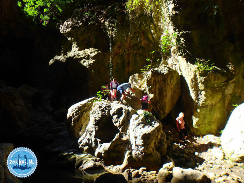 Chondros, Crete: Sometimes we have a break at Chondros. In this area is the Portella gorge, a well-known area among the canyon athletes. It is a long gorge that continues all the way up to Keratokambos. In the winter and spring you can enjoy there the view of a waterfall with a free fall of 50 meters. After that you can see far below Keratokambos, with a spectacular view of the azure blue waters of the sea!