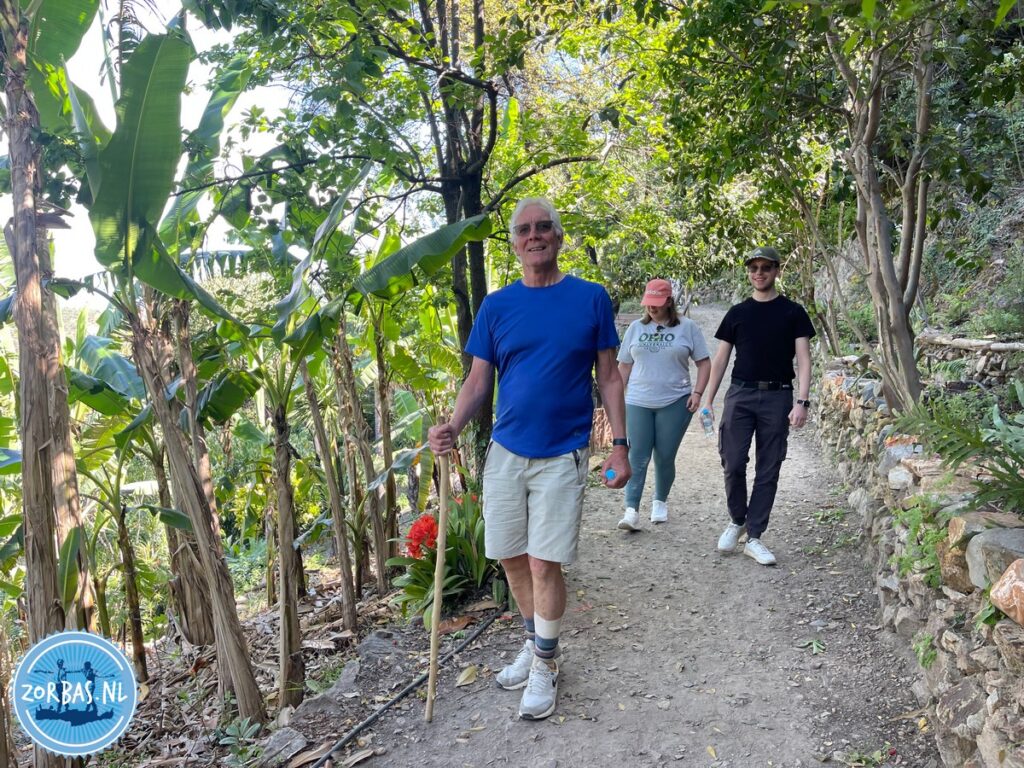 Na een aantal kilometers door het woud gewandeld te hebben, komen we uit in een soort rimboe. Hier loopt u tussen bamboe en oleanders. Even later lopen we door een kleine sinaasappelgaard. Dit stuk van de tocht gaat langs en onder mooie rotspartijen door. Aan het einde van deze formatie komen we uit op het laagst gelegen stuk van een kloof. Hierna gaat het pad omhoog langs een ravijn. Hier hebben we een prachtig uitzicht op de beek en al de bomen en planten die hier groeien. Halverwege komen we aan op de plek waar we lunchen.