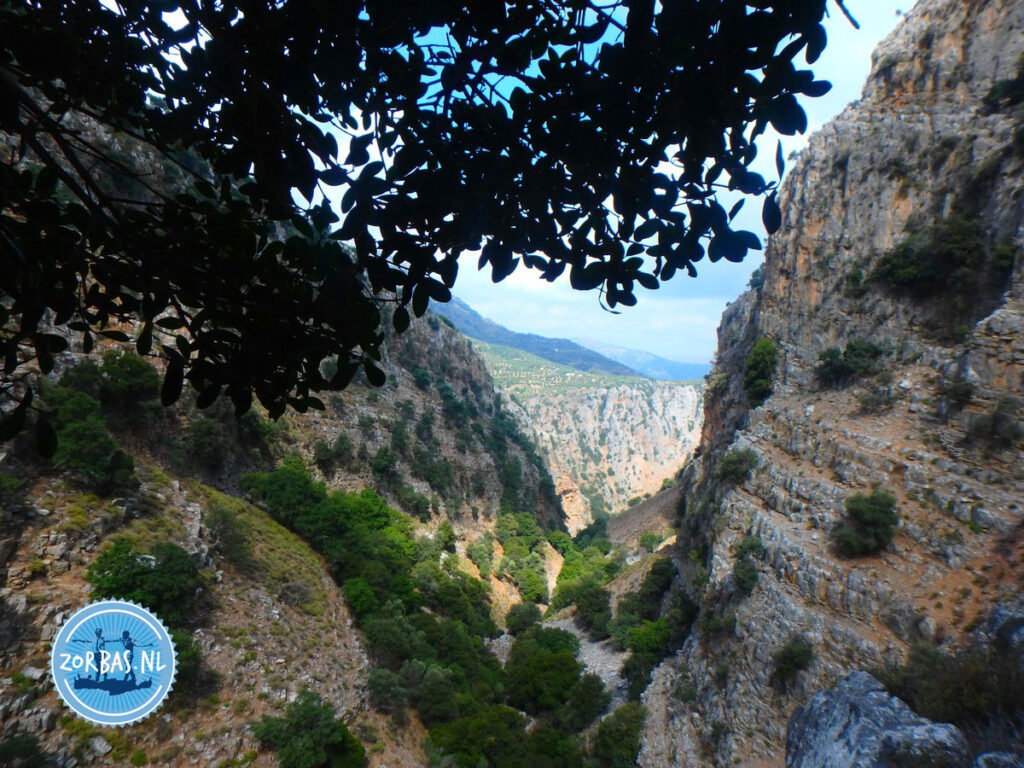 After hiking through the gorge, the nature changes. Now you see green bushes and trees. In the forest you have amazing views over the mountains. The forest has a great ecological value and is situated at an altitude of 1100 meters. Several native species of flora and fauna live here, such as the Cretan kefalanthiro (indigenous orchid) and the Cretan fourogato (wild cat). These cats are huge, but they are afraid of people, so the chance you will see them is extremely small. In the forest are trees you find only on Crete, especially the Quercus Coccifera (kermes oak) has adapted fully to the environment. Furthermore, you also see here the maple, cypress, pine tree and plane tree. At the end of this path, you continue towards the right in the direction of Agios Ioannis.