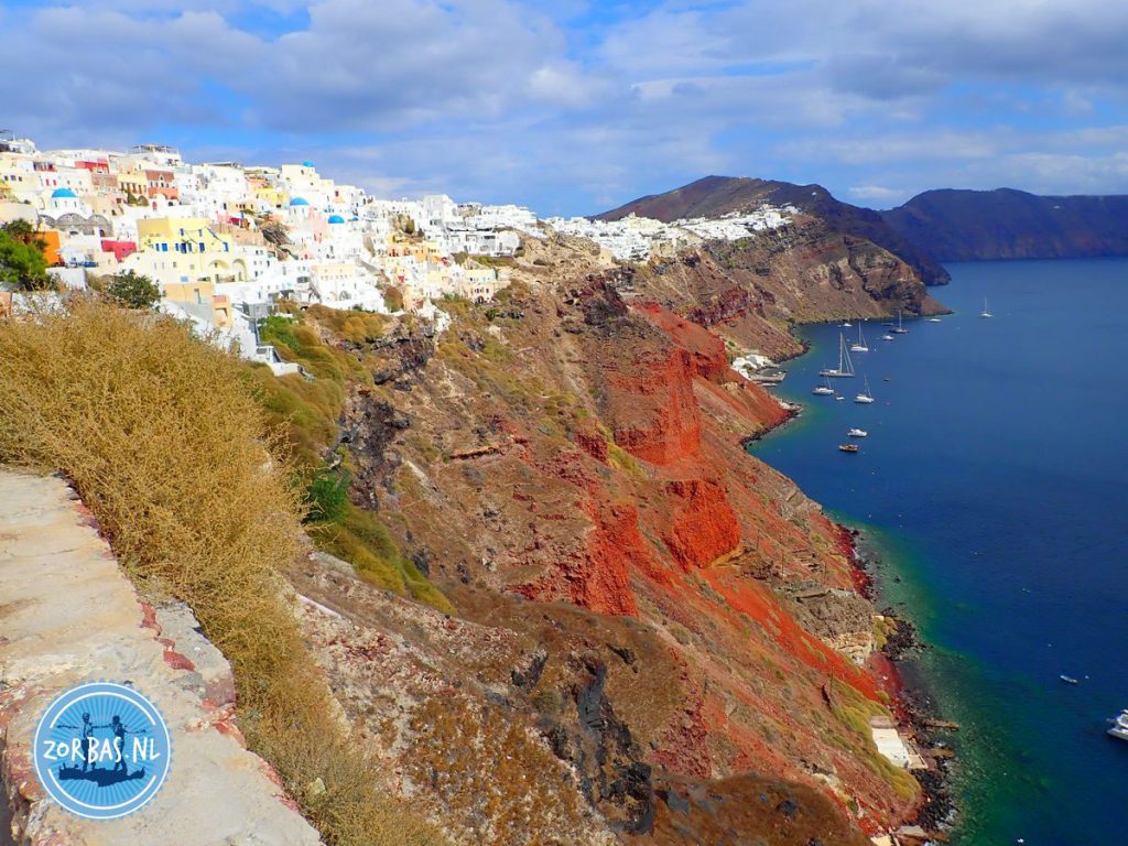 De Kliffen: De steile, veelkleurige kliffen die de rand van de Santorini caldera vormen, rijzen op tot wel 300 meter boven het wateroppervlak. Vanuit de dorpen Oia en Fira heb je hierdoor een duizelingwekkend zicht.