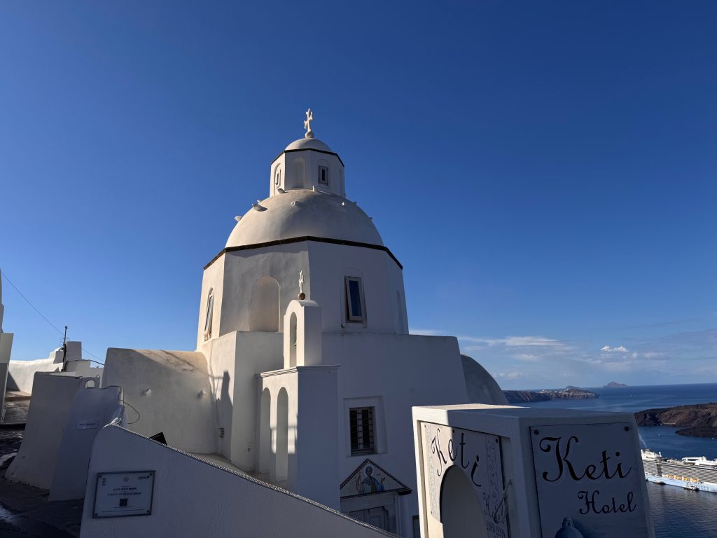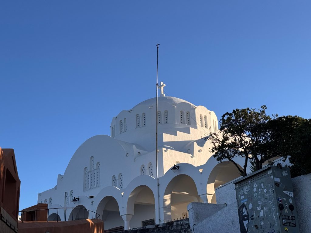 Religieuze Monumenten op Santorini: Bezoek de prachtige kerken in de stad, waaronder de witgekalkte Orthodoxe Metropolitane Kathedraal en de Katholieke Kathedraal van Sint-Jan de Doper. Hun architectuur is een perfecte illustratie van de lokale bouwstijl.