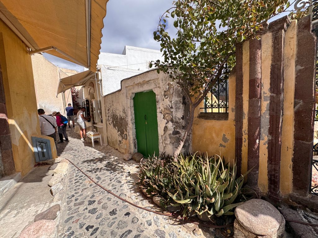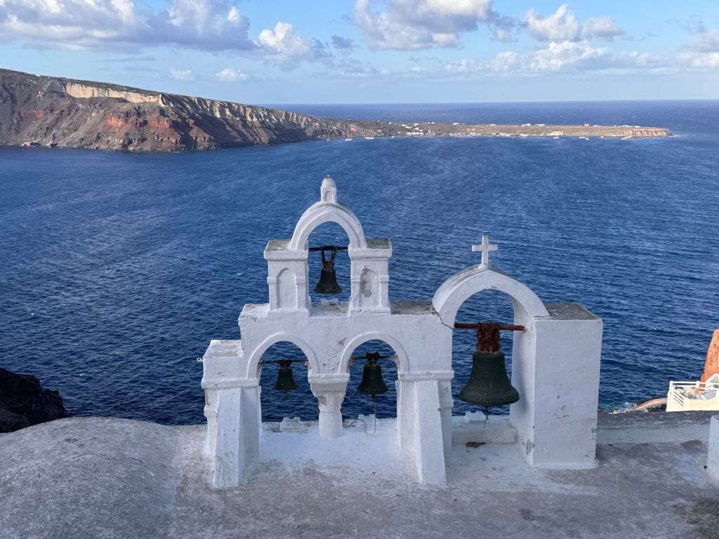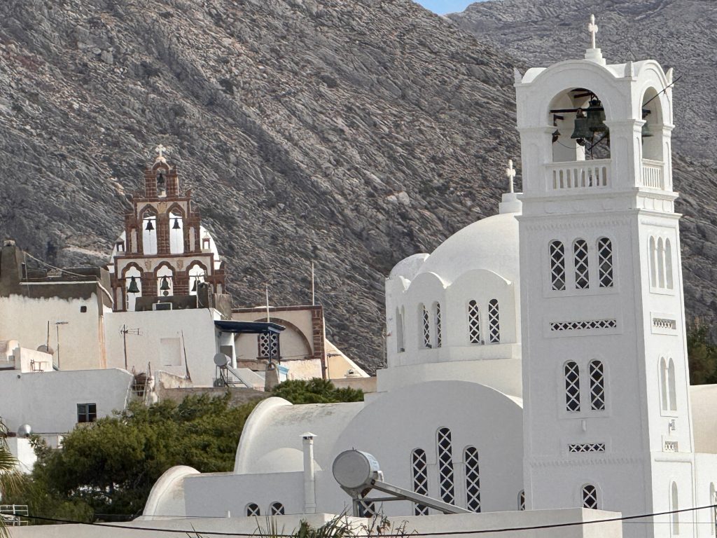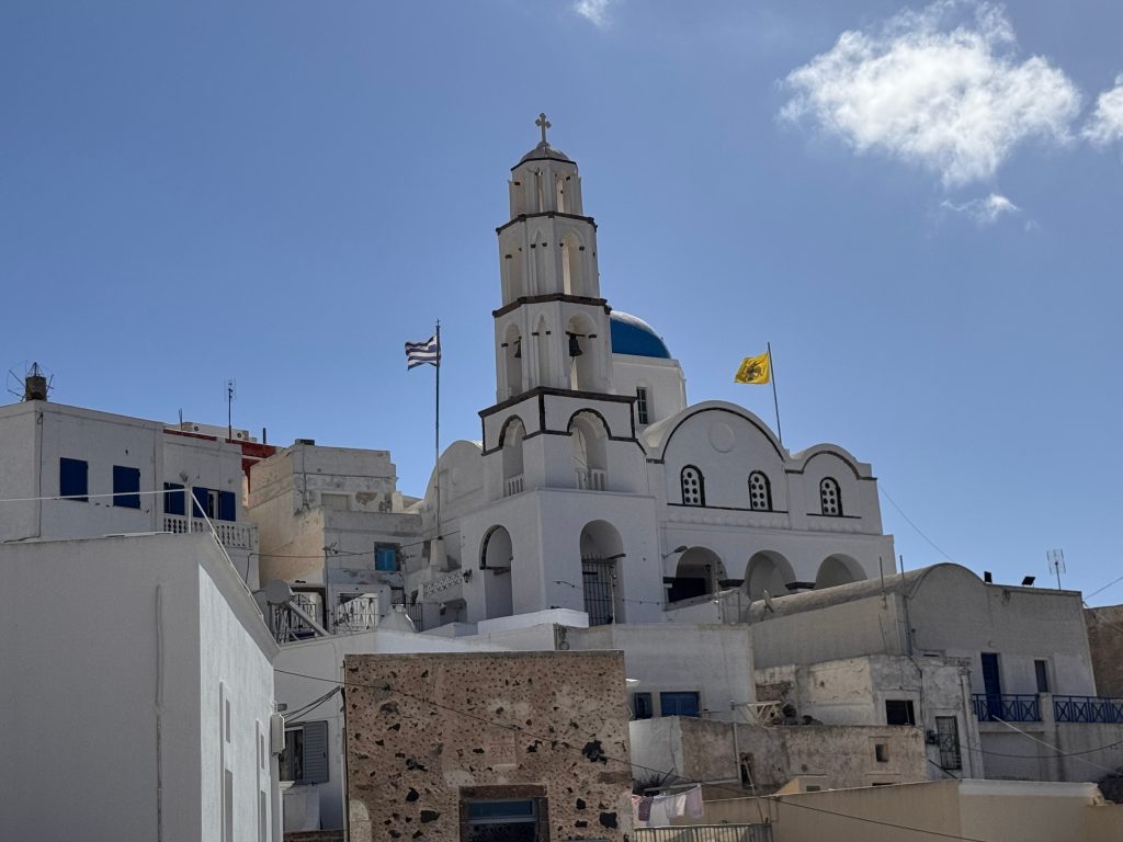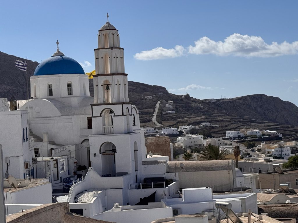 Onderweg ontdekt u verborgen pleinen en talloze traditionele Griekse kerken met kenmerkende torens en kleurrijke klokken. Bezoek zeker het beroemde klooster van Profitis Ilias (Profeet Elias) net boven het dorp; het is het hoogste punt van Santorini en biedt een spectaculair uitkijkpunt voor onvergetelijke foto’s van Santorini.