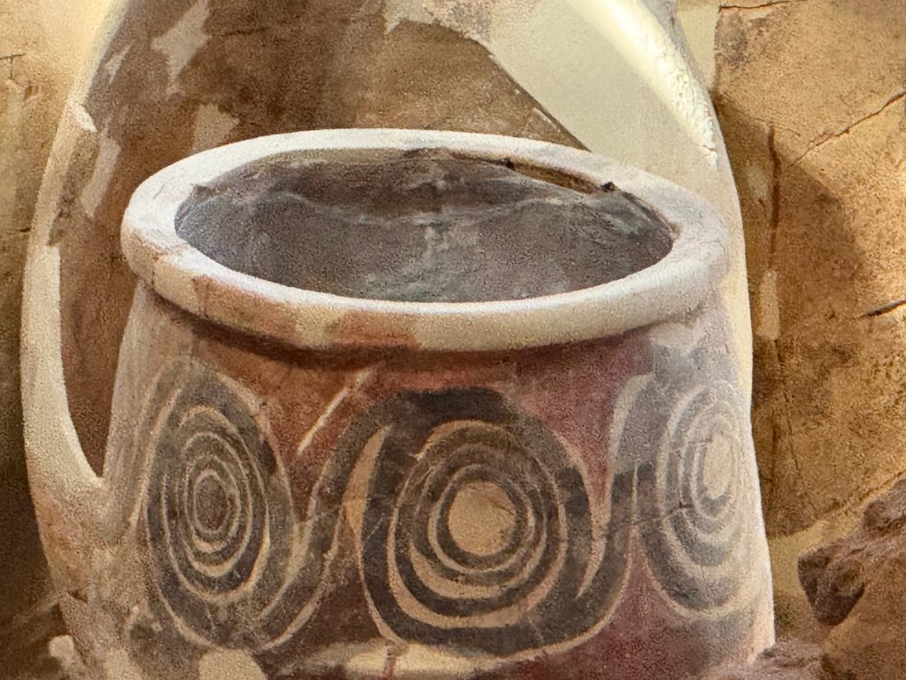 Muurschilderingen: Hoewel de meeste originele muurschilderingen (fresco’s) zijn overgebracht naar het Nationaal Archeologisch Museum in Athene, tonen de plekken waar ze werden gevonden de rijkdom en het artistieke talent van de bewoners. De schilderingen beeldden vaak taferelen uit de natuur, ceremonies en het dagelijkse leven af.