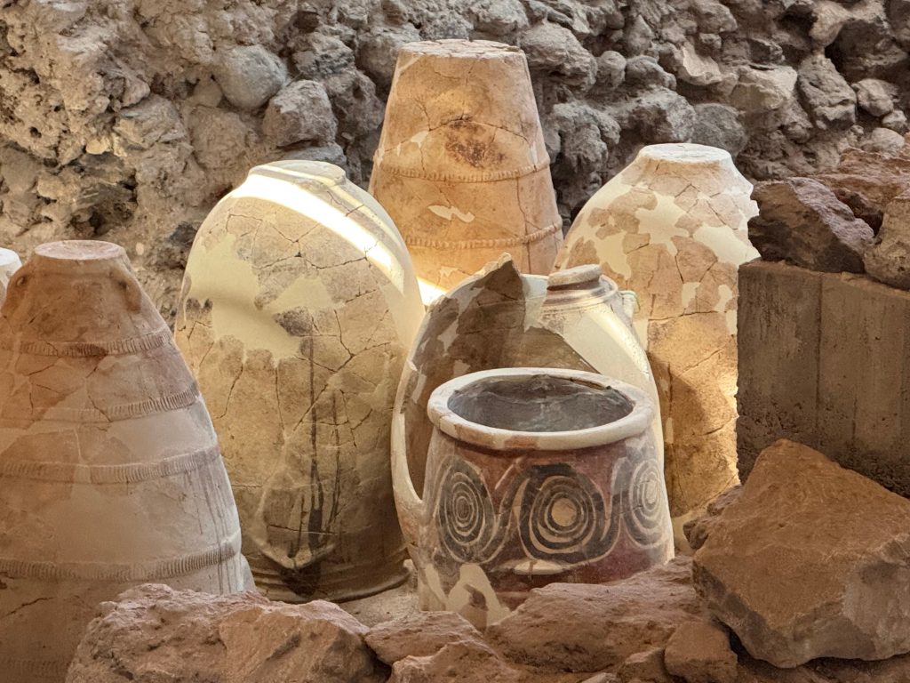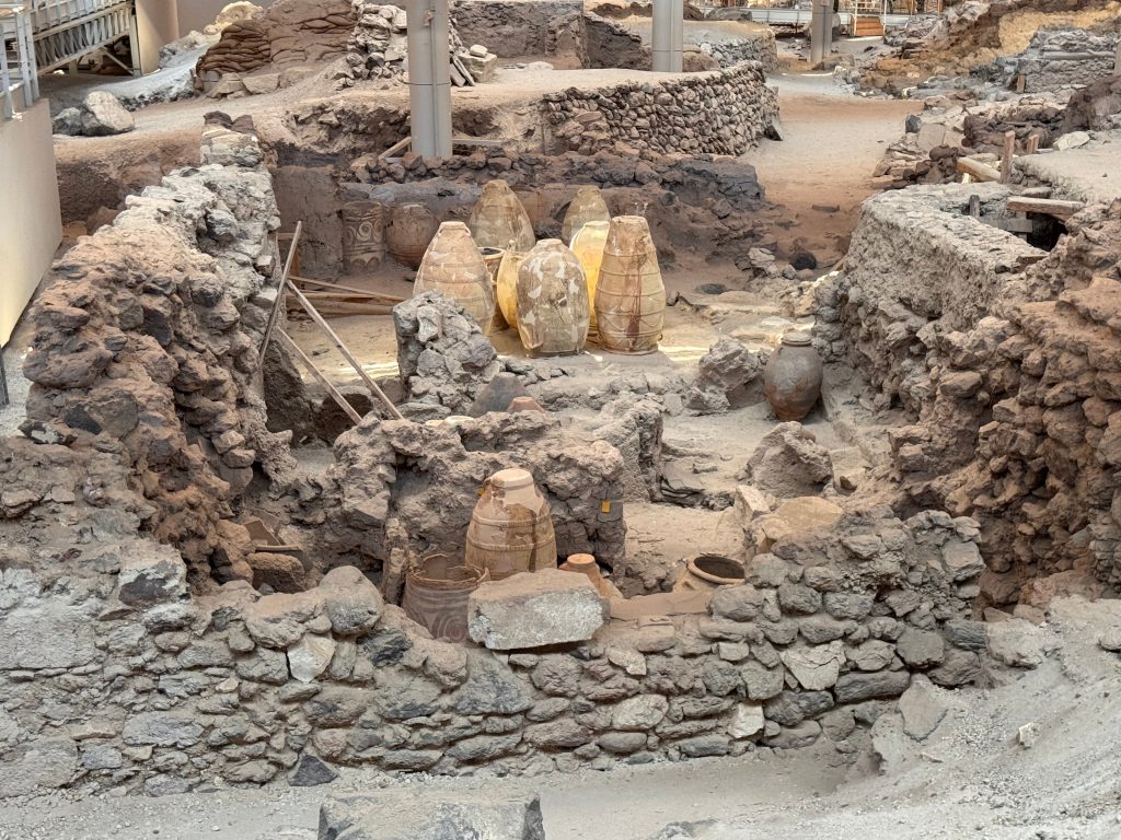 De opgravingen van Akrotiri (die sinds 1967 aan de gang zijn) bieden een uniek inzicht in het dagelijks leven van de Minoïsche beschaving: